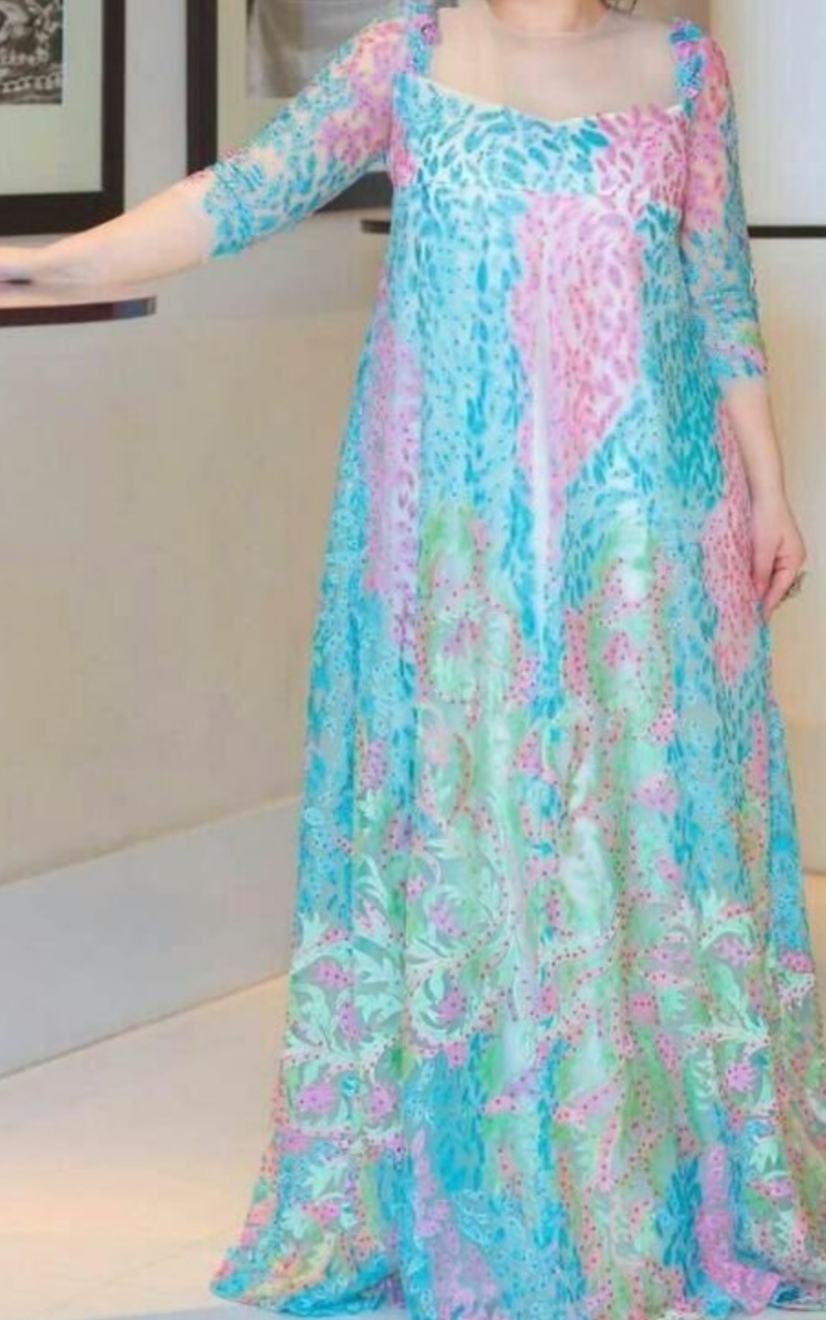 Продам красивое платье. Цвета изделия плавно переходят в тонах голубого. Состояние новое. Такой образ подойдёт для праздников.