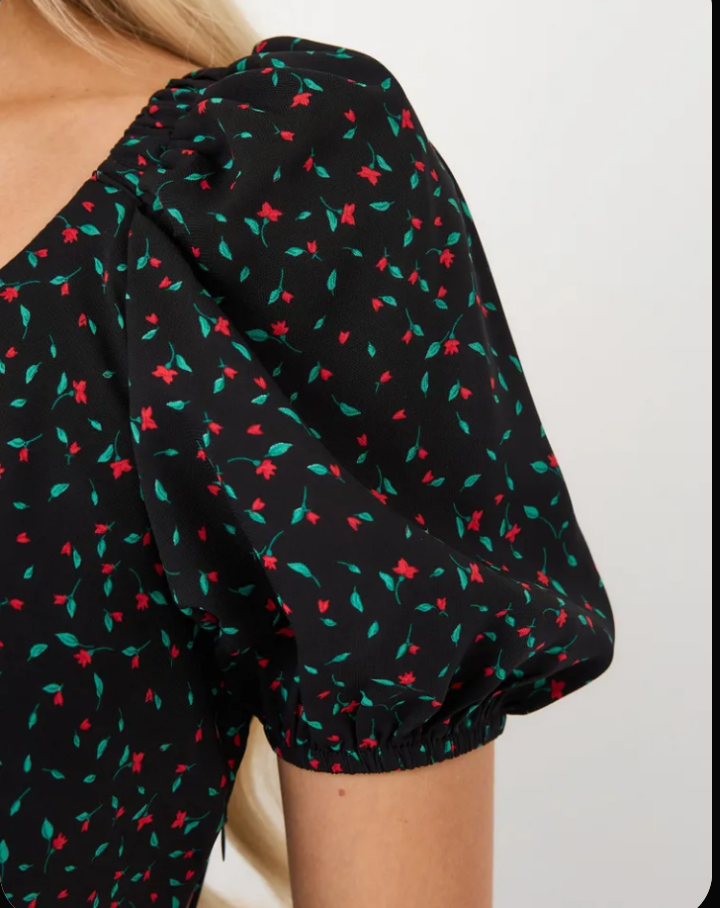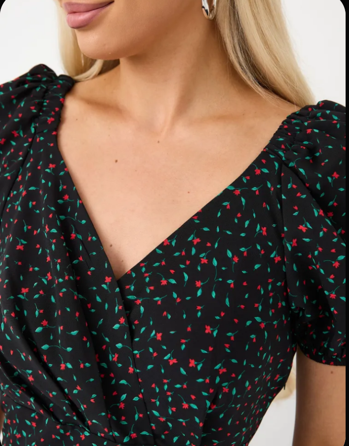 Нежный цветочный принт и стильный дизайн создают элегантный образ.