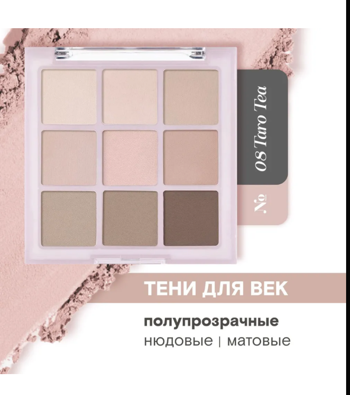 Палетка теней для век – это идеальный выбор для создания нежного и стильного макияжа. Включает 9 оттенков, идеально подобранных для создания нюдового образа. Набор оттенков "Taro Tea" сочетает в себе мягкие и естественные цвета, позволяя вам создавать как повседневные, так и более выразительные образы.