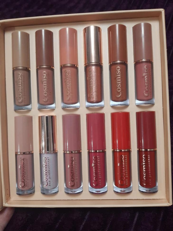 В этом наборе 10 ультра-матовых оттенков помады и 2 помады с блестками. Кремовые помады водостойкие, обеспечивают безупречное покрытие на весь день.