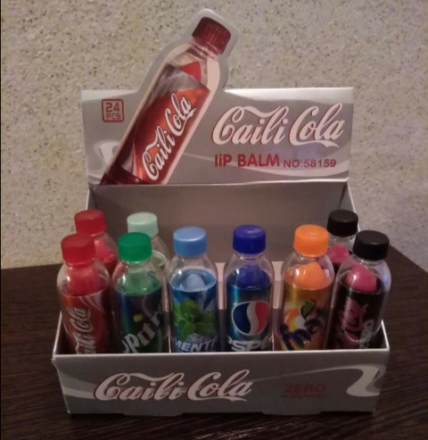 Нежный бальзам для губ - кока кола, пепси, фанта, спрайт. Цвет и запах бальзама разный, эффект одинаковый.