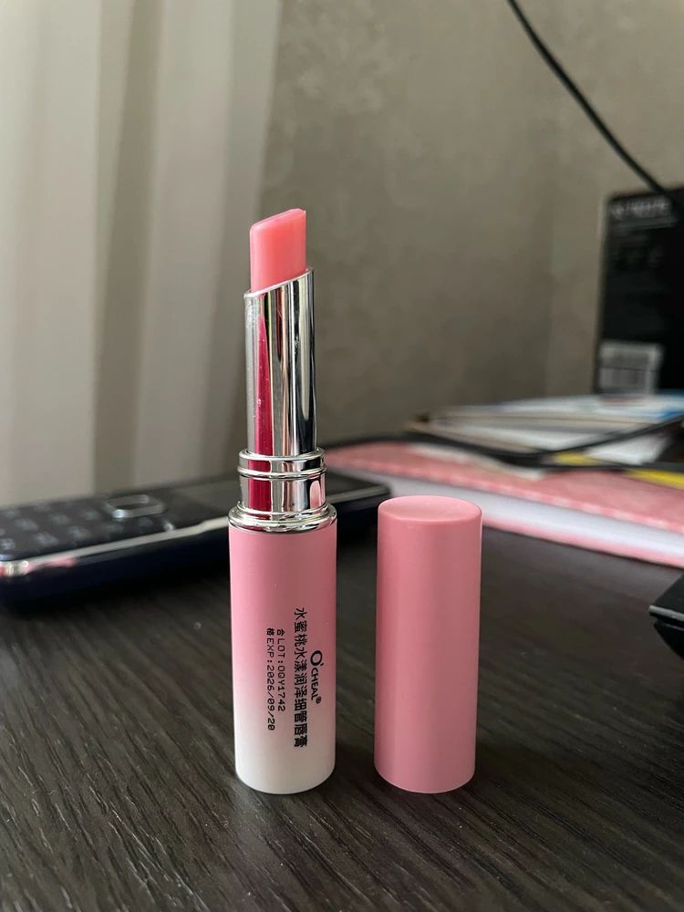 Бальзам для губ нежно-розового цвета с приятным ароматом в виде стика.