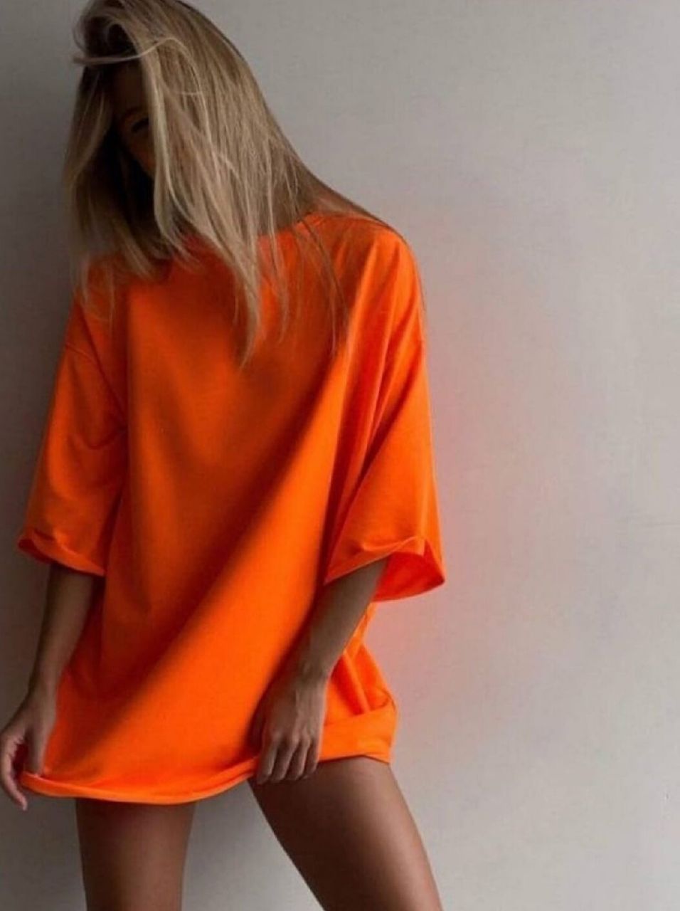 Яркая оранжевая футболка. Размер оверсайз 42/50.