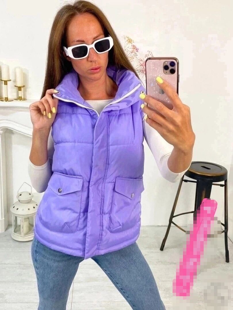 Жилетка женская на синтепоне. Тёплая, с карманами. Цвет сиреневый. Размер 44