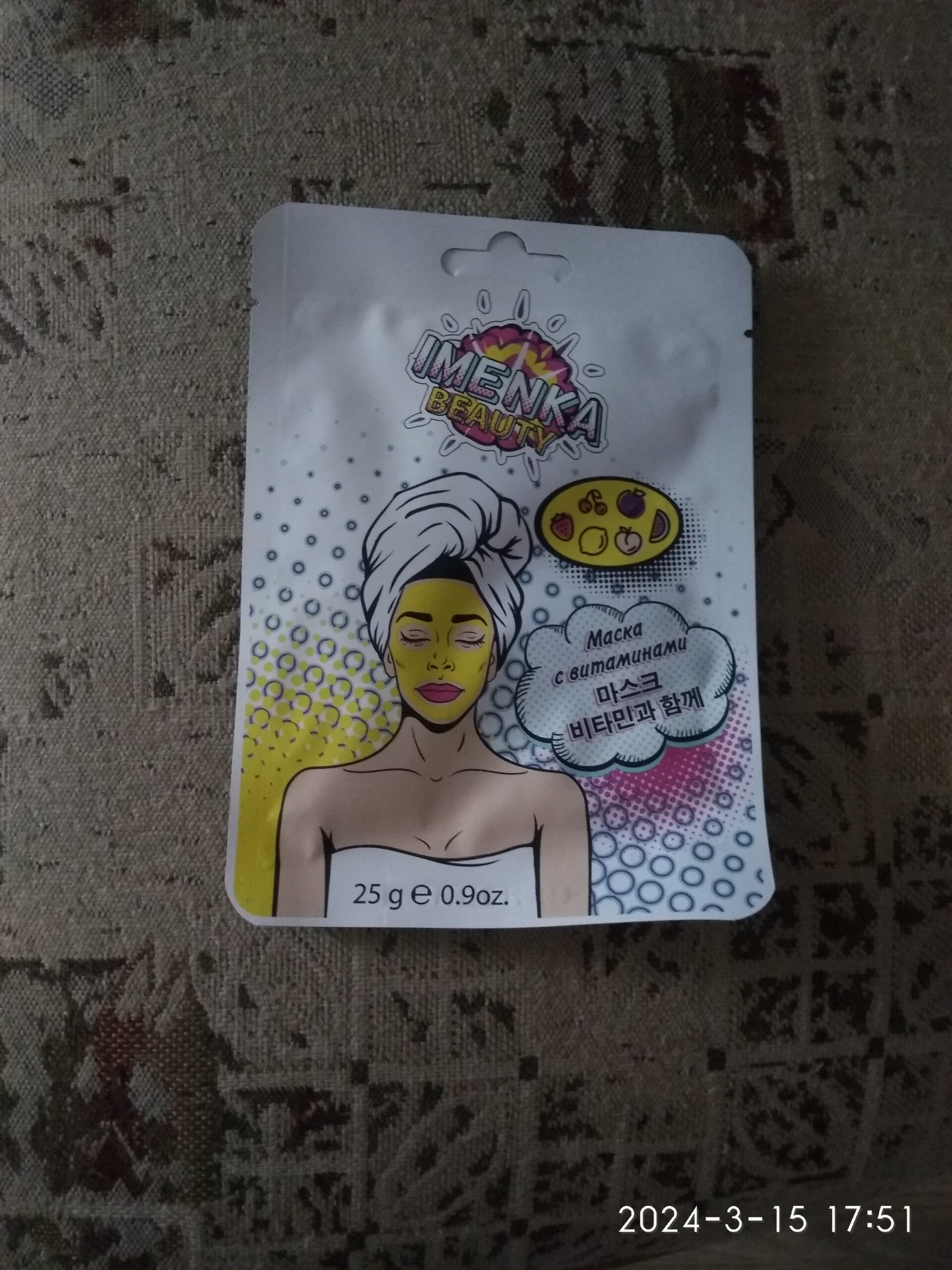 Тканевая маска для лица омолаживающая с витаминами (B5,B6, E,C). Применяется для всех типов кожи.