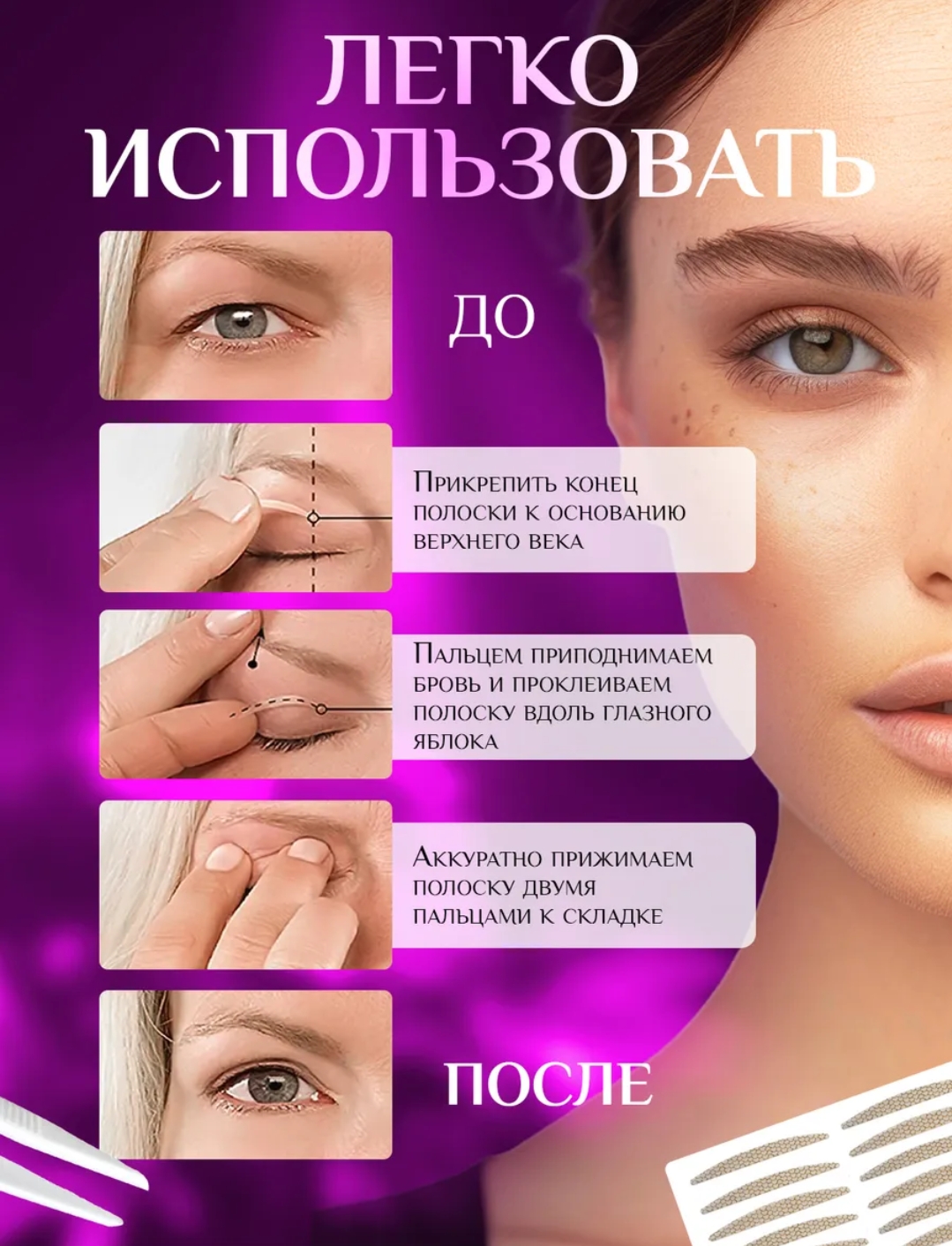 Полоски созданы для мгновенной подтяжки верхнего века и лифтинг эффекта лица.
