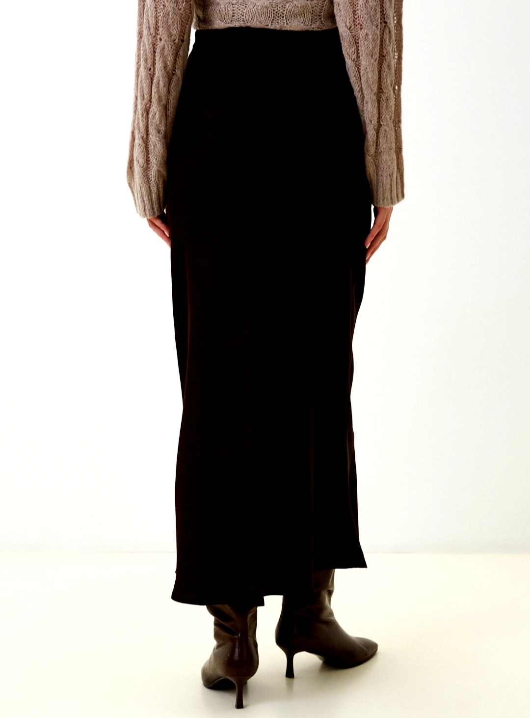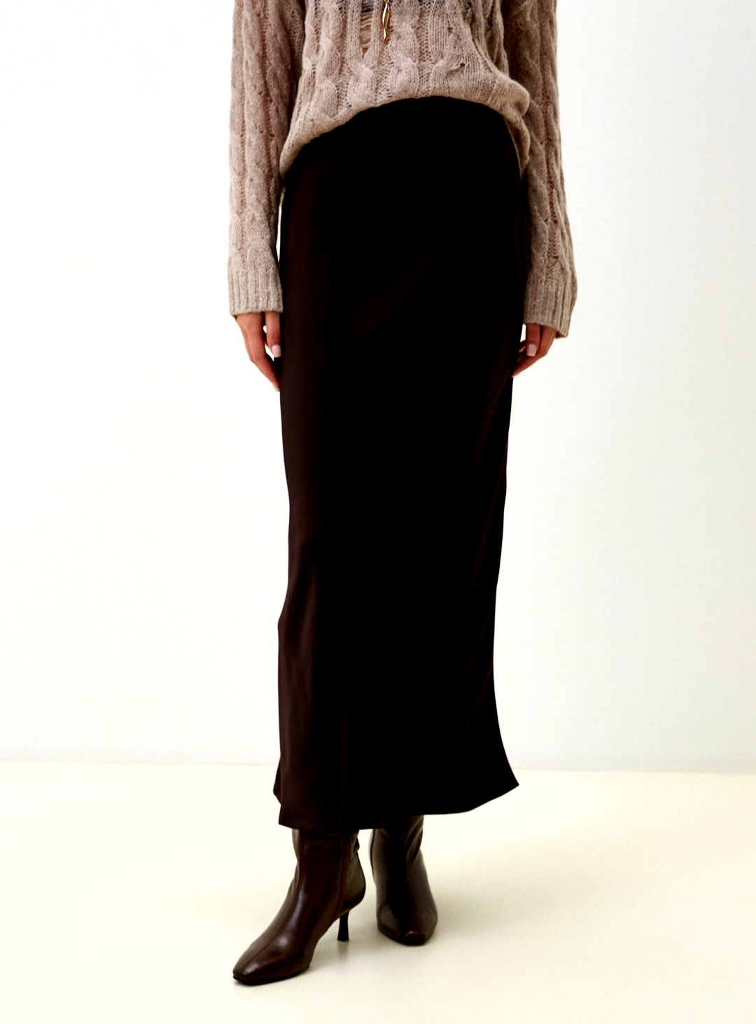 Женская однотонная коричневого цвета юбка-трапеция , без застёжки.