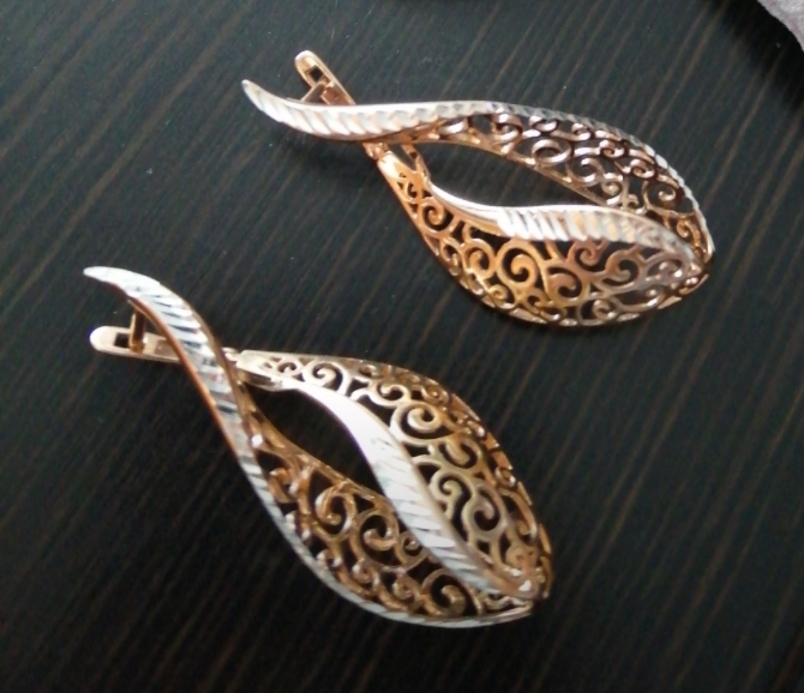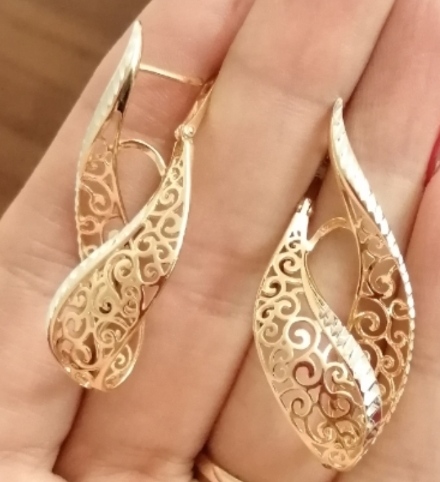 Серебряные позолоченные серьги, вес 5, 29 грамм, лёгкие, ажурные, очень красивые, новые