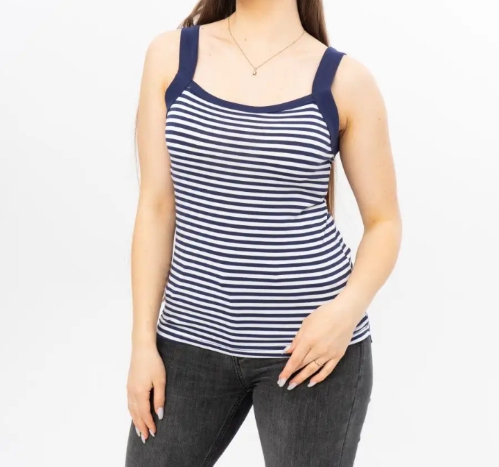 Майка женская, на широких лямках в полоску. Придаёт нежность и женственность Вашему образу. Майка мягкая, приятная к телу, позволяет чувствовать себя комфортно в любую погоду...