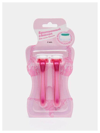 Бритва женская одноразовая для зоны бикини, 2 штуки. Ярко розового цвета, острые лезвия, удобная эргономичная ручка.