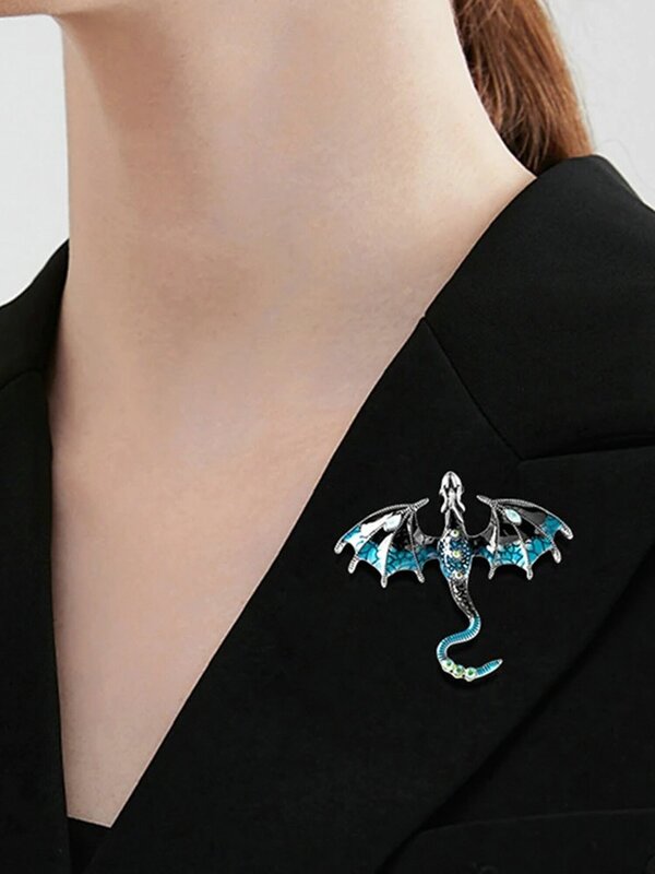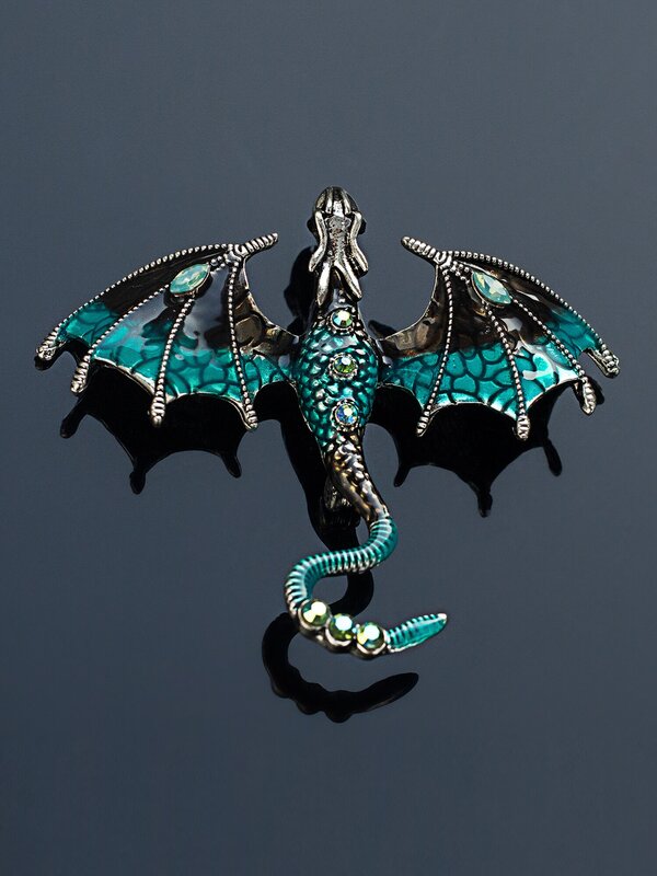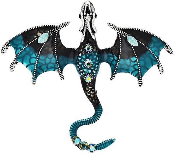 Брошь Дракон. Женская бижутерия на булавке с эмалью. Цвет синий, со стразами. Имеется петля, можно носить на цепочке как кулон.