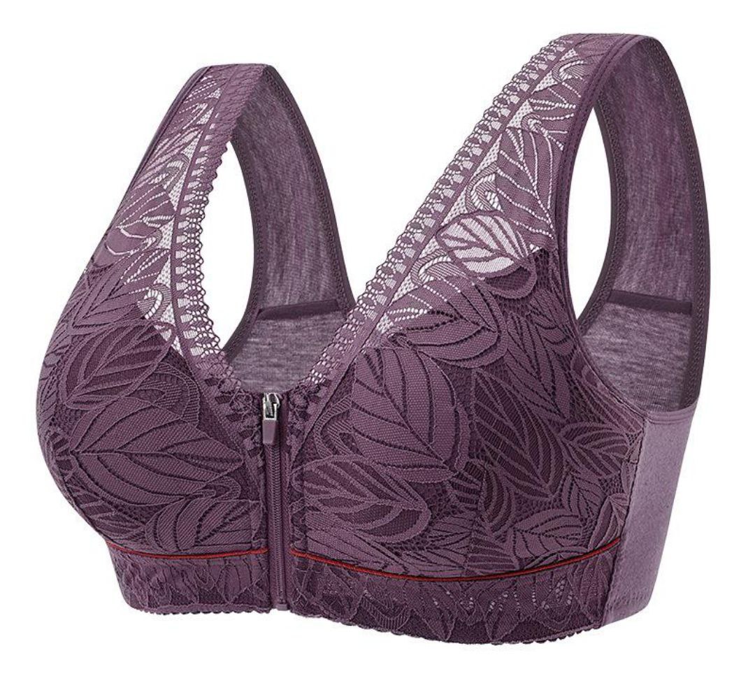 Женский бюстгальтер очень удобный и приятный к телу. На коже практически не чувствуется. Спереди застёгивается на молнию. Чашечка плотная. Размер 40/90, на мои параметры: обхват груди 74. Материал эластичный, очень мягкий. Снаружи красивое кружево. Материал: нейлон.