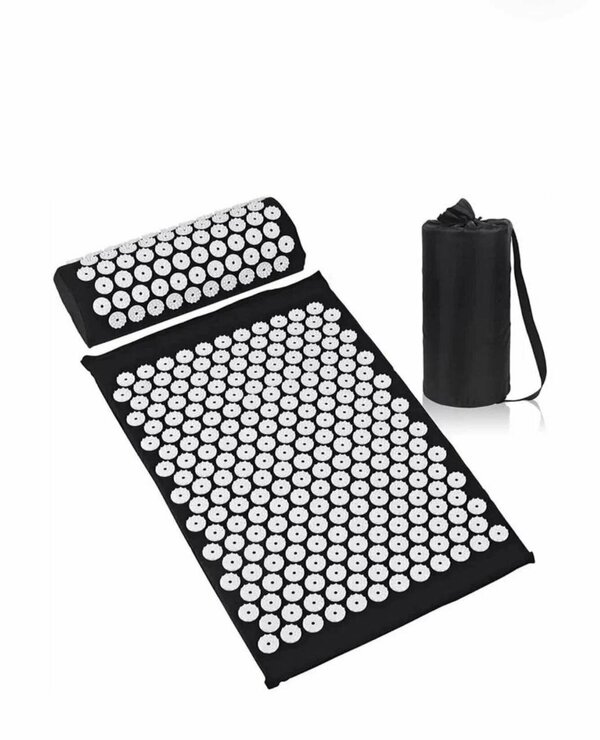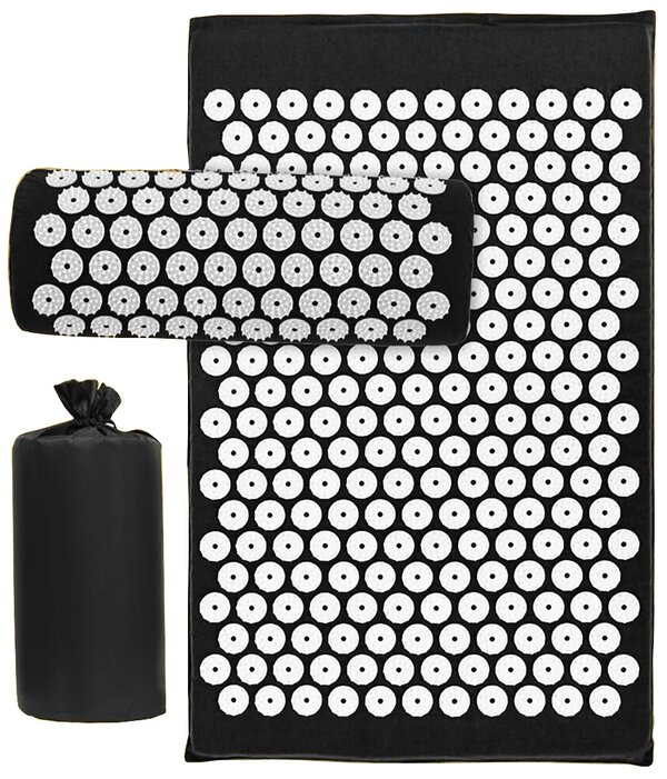 Массажный набор "Аппликатор Кузнецова", 3в1. В набор входит валик для головы и шеи и коврик для тела размером 65 x 40 x 3 см. Шаг игл 3,5 мм. Цвет черный с белым.