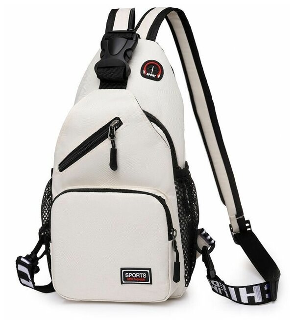 Рюкзак слинг молочного цвета, стильный и функциональный, можно носить как рюкзак и как сумку на плечо. Имеет два сетчатых кармана и два кармана на молнии.