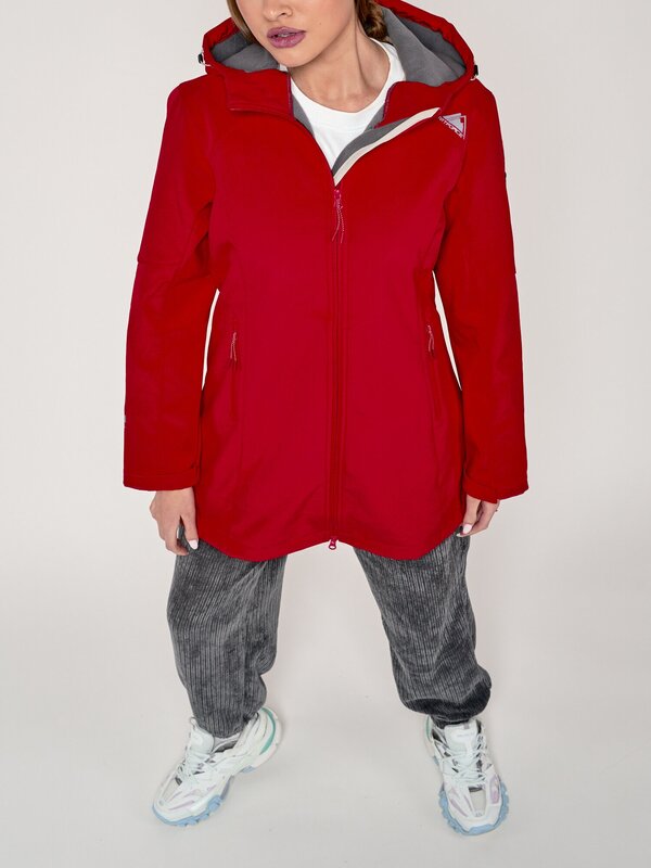 Женская ветровка для спорта и активного образа жизни. Особенности модели: несъемный капюшон, два внешних кармана на молнии, флисовая подкладка, двойной замок. Размер 52.