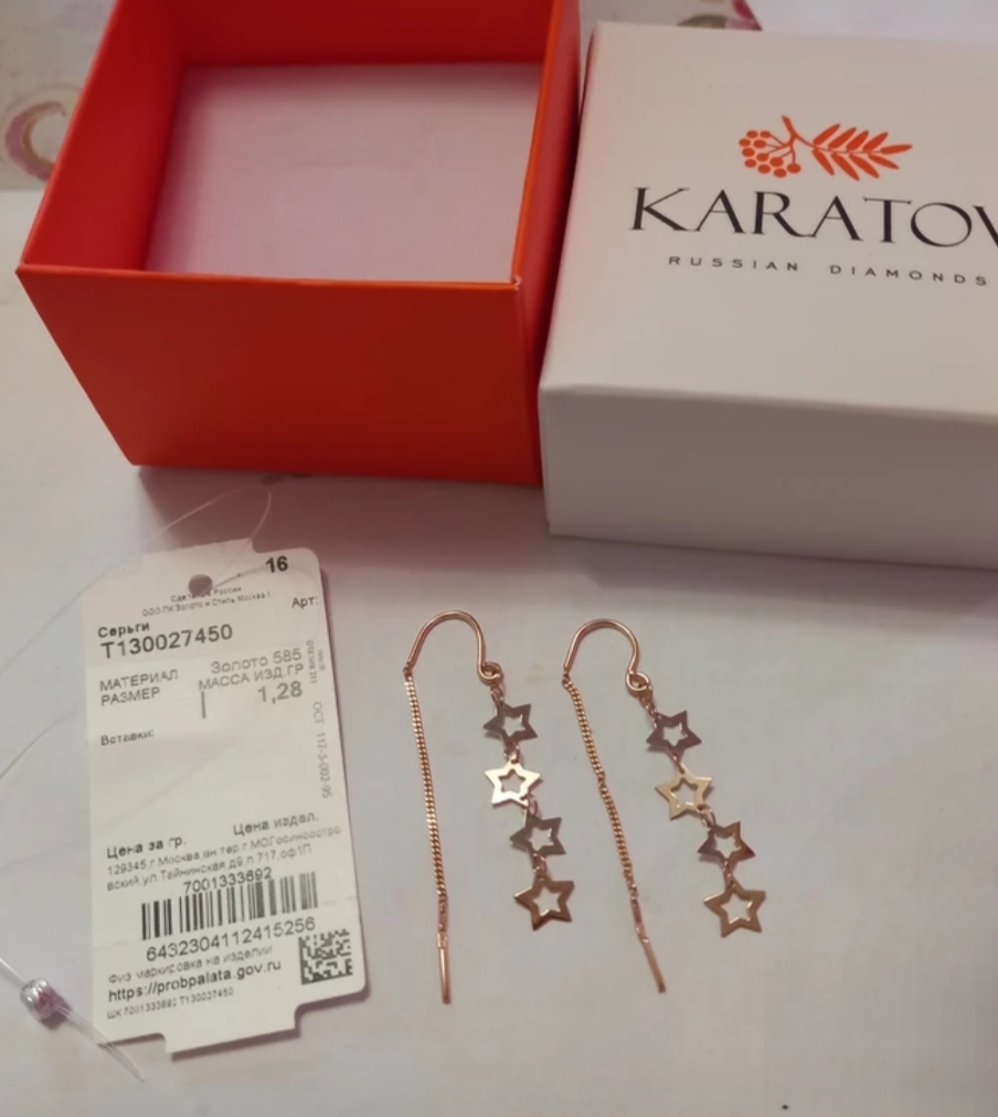 Серьги протяжки "звёзды", золото 585 пробы, 1.28 гр