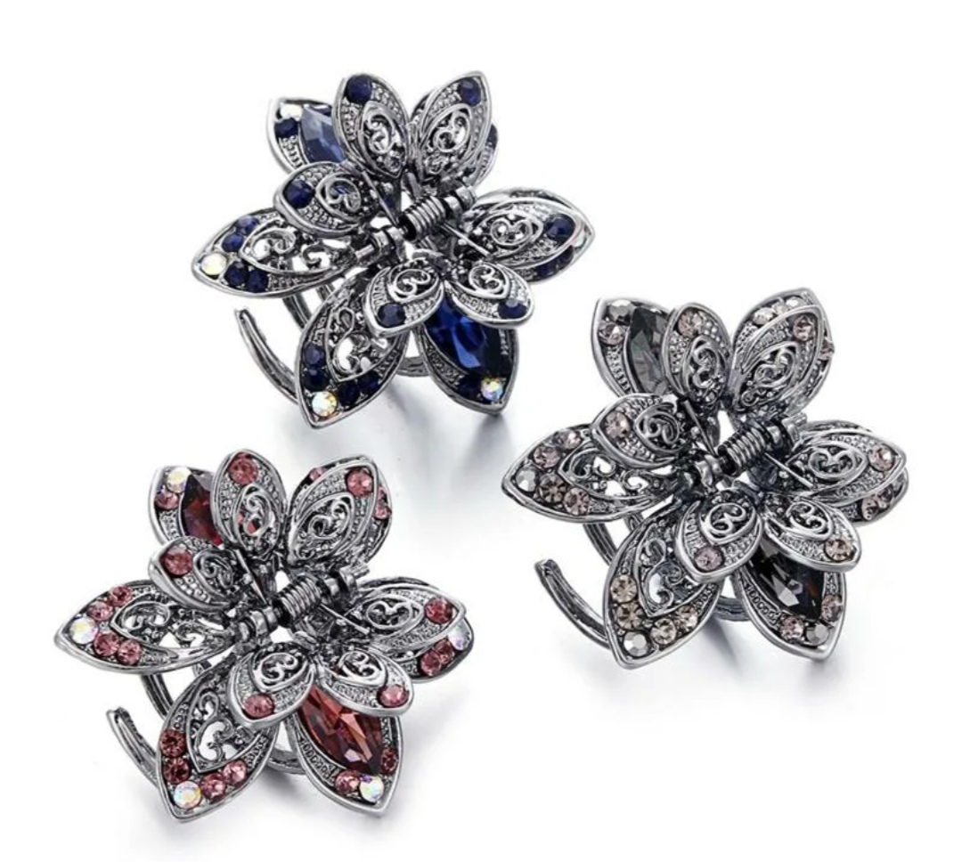 Заколки для волос,в виде цветов.Металлические со стразами. Новые, три штуки. Цена за комплект.