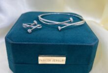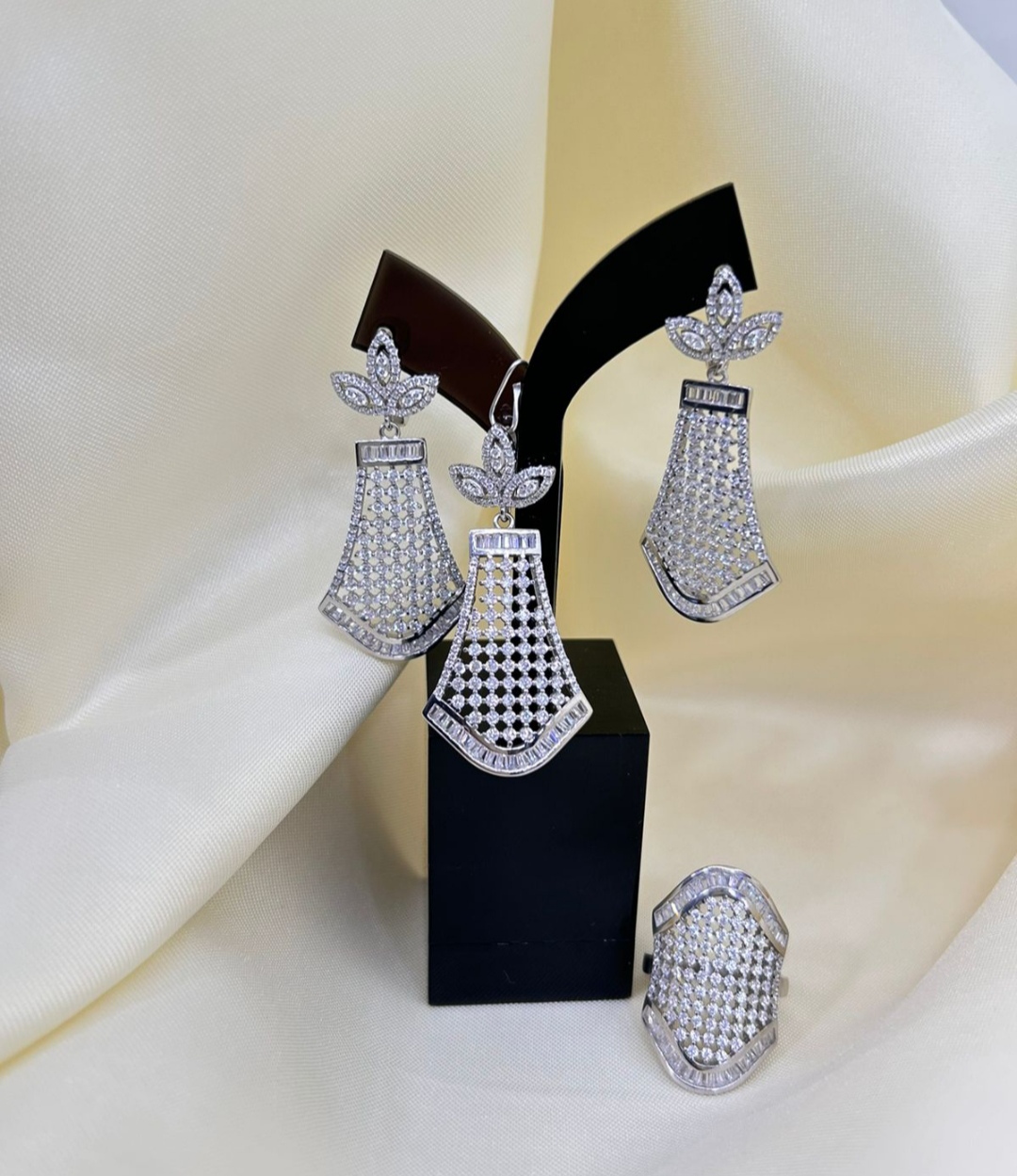 Комплект женских аксессуаров, украшен камнями сваровски.