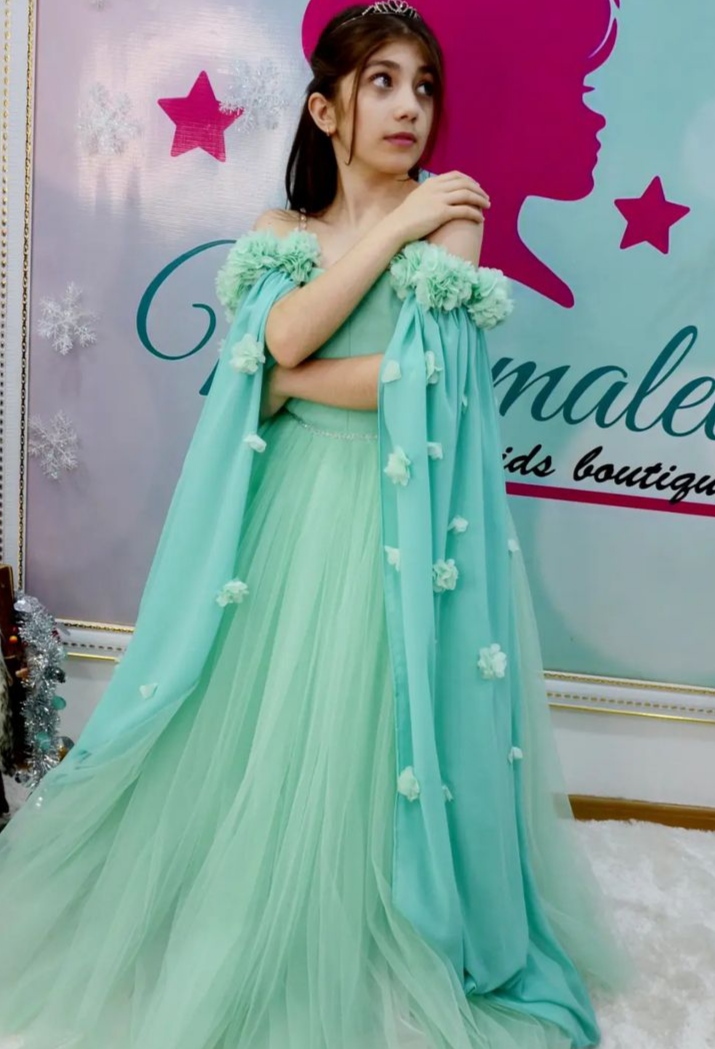 Лёгкое, воздушное, очень нежного цвета, выглядит очень красиво, размер для девочек 12-13 лет.