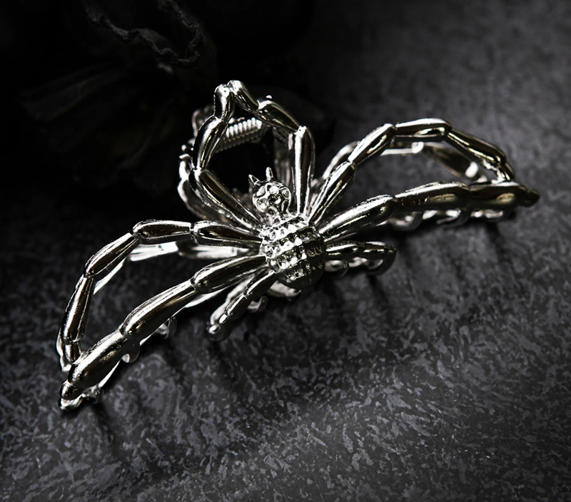 Краб для волос в виде Паука, цвет серебряный. Заколка 11см.