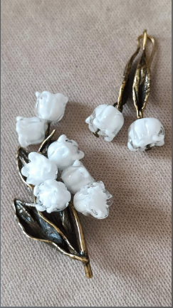 Очаровательный комплект бижутерии "Ландыши"....брошь и серьги...стекло.