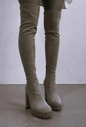 Оригинальные ботфорты стального цвета из замши. Новые. Размер 37.