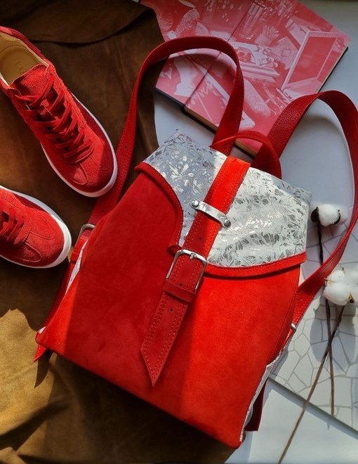 Стильный рюкзак из экокожи ярко красного цвета украсит любой наряд молодой женщины.