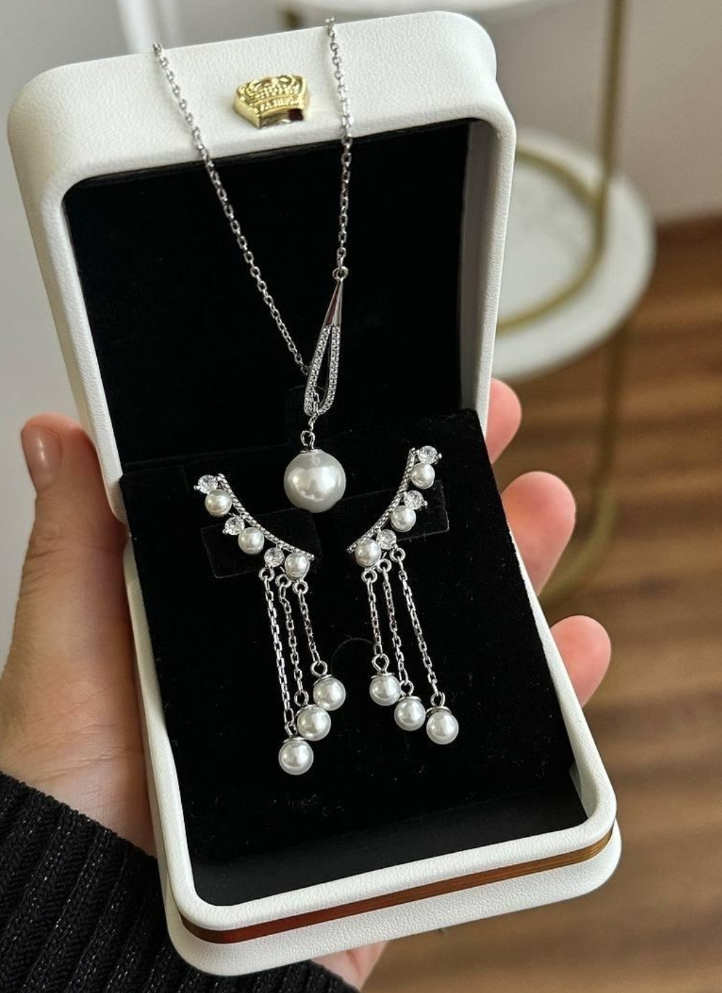 Комплект из серебра 925 пробы - серьги и кулон на цепочке. Новый, в элегантной подарочной коробке.
