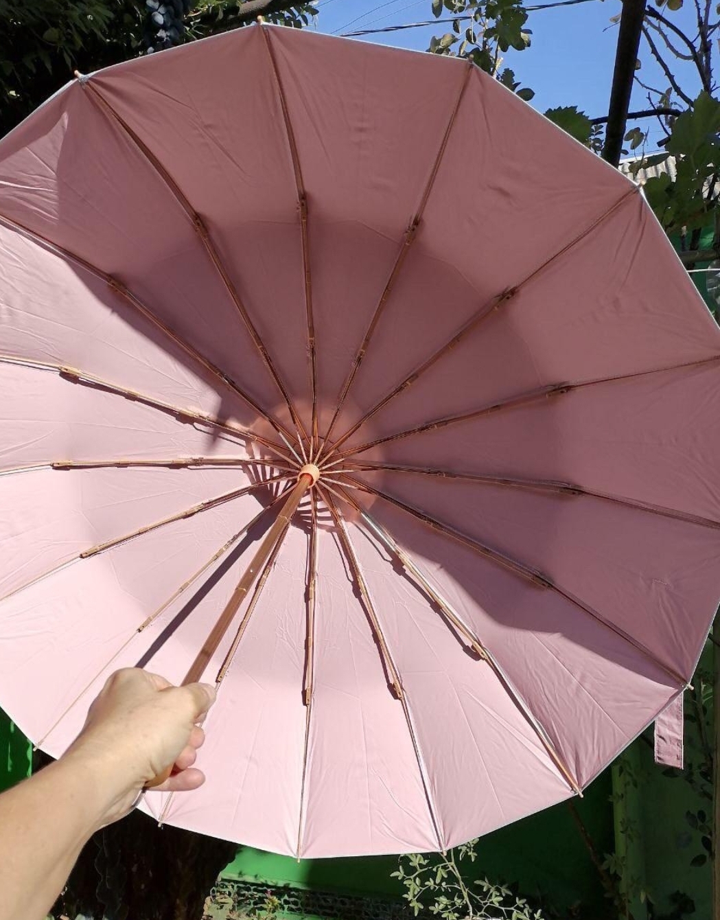 В продаже качественный, изящный и надёжный зонт производства Япония. Ручка деревянная, система "антишторм", диаметр купола 110 см.