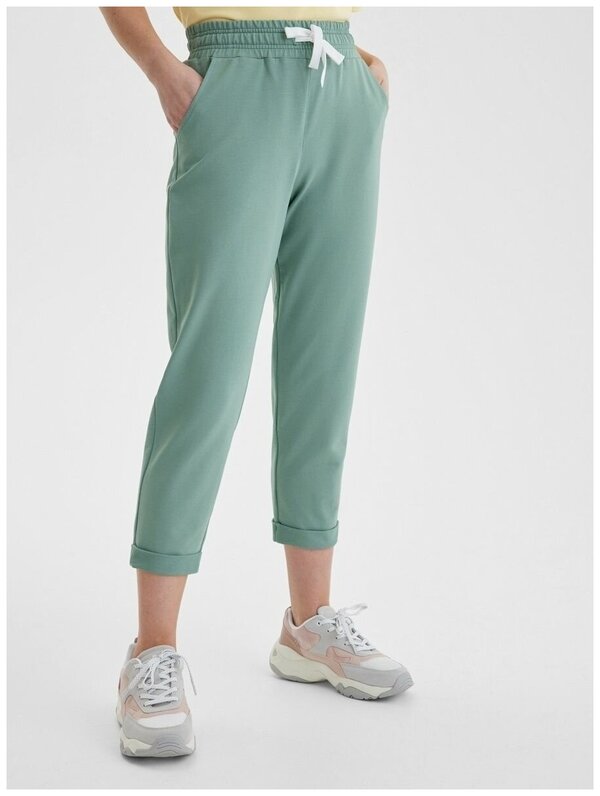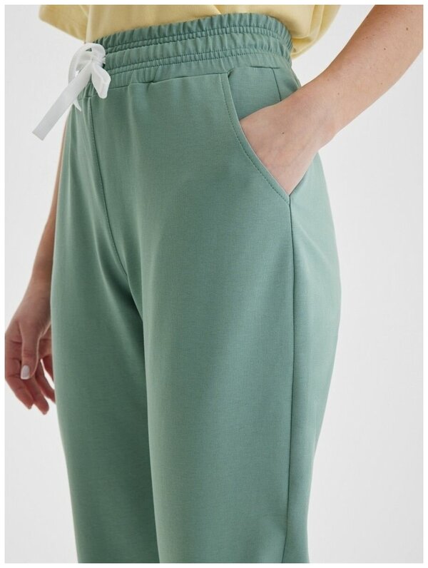 Брюки укороченные с подворотами, длина 7/8, из качественного турецкого трикотажа (футер в 2 нитки). На поясе резинка с кулиской, 2 врезных кармана. Цвет зелёный, размер 50.
