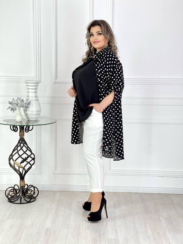 Стильный и женственный костюм тройка отличного качества. Футболка, брюки и накидка.