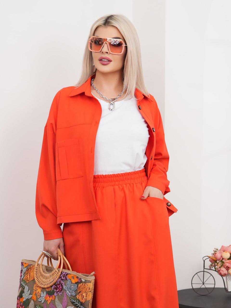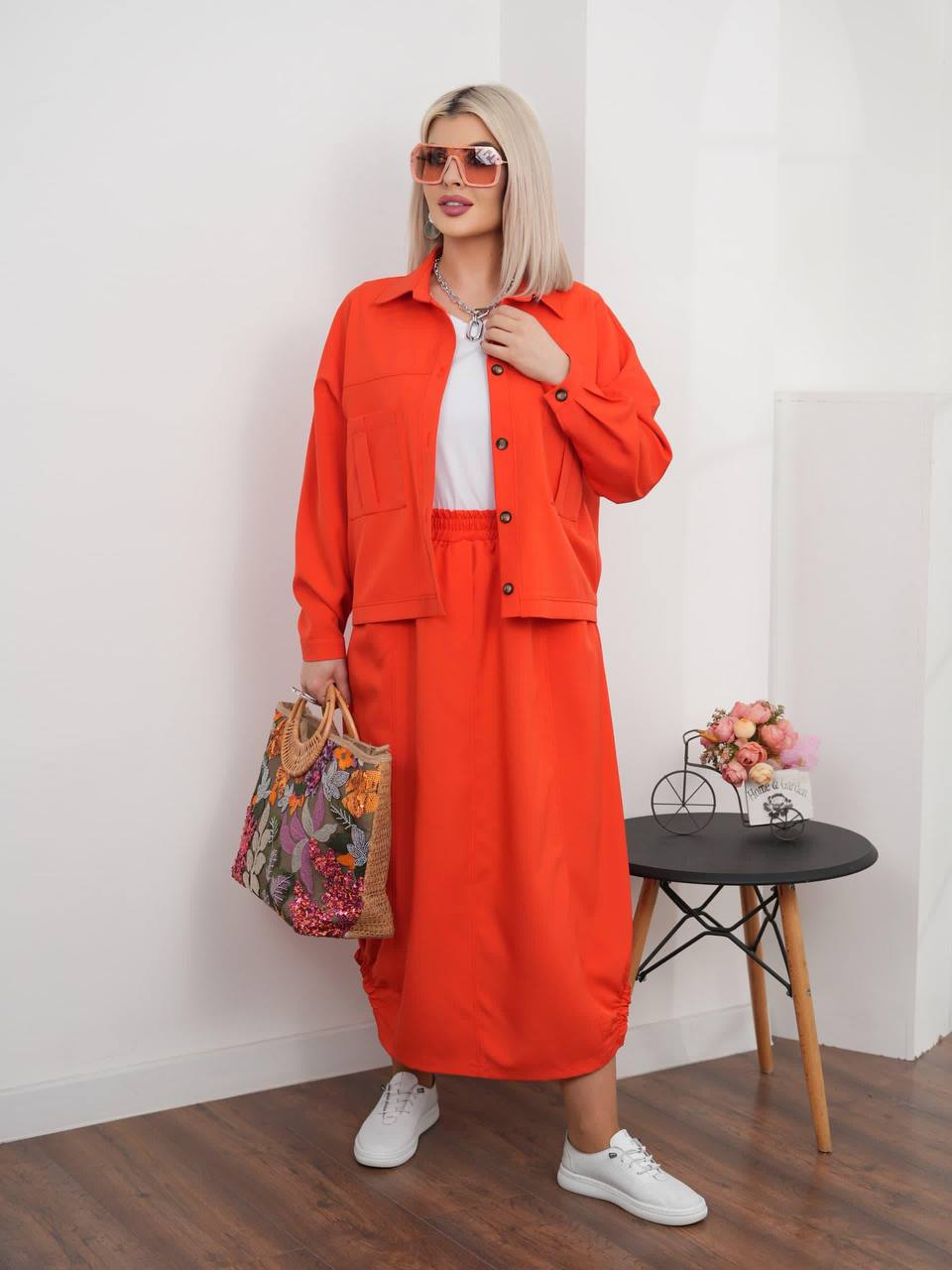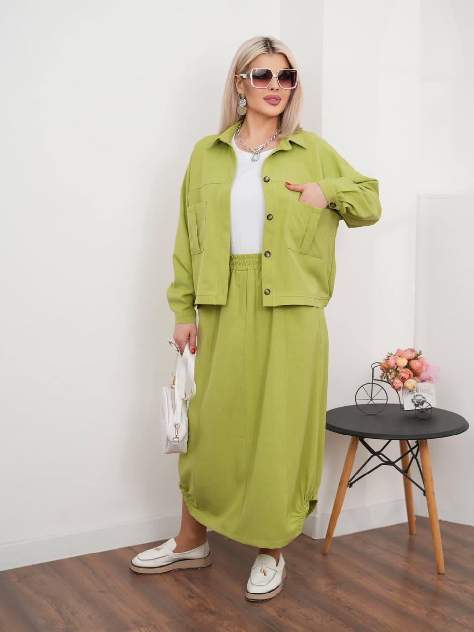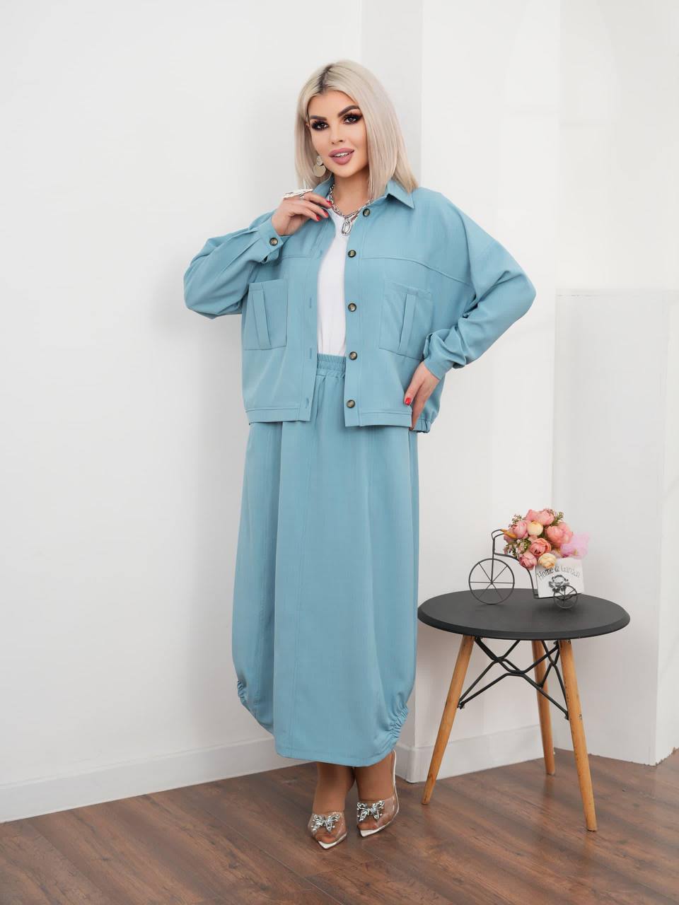 Шикарный костюм тройка разных модных цветов. В комплекте пиджак, футболка и юбка.