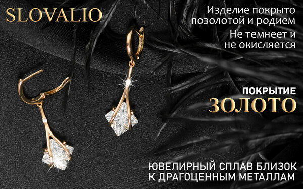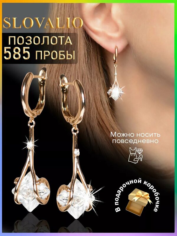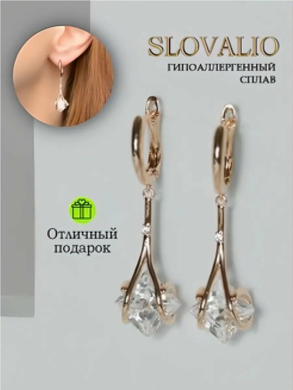 Серьги с подвесками,конго SLOVALIO,кристалл-фианит