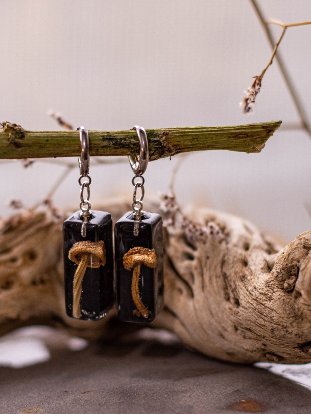 Продажа необычной парочки серёжек из грибочков в эпоксидной смоле.