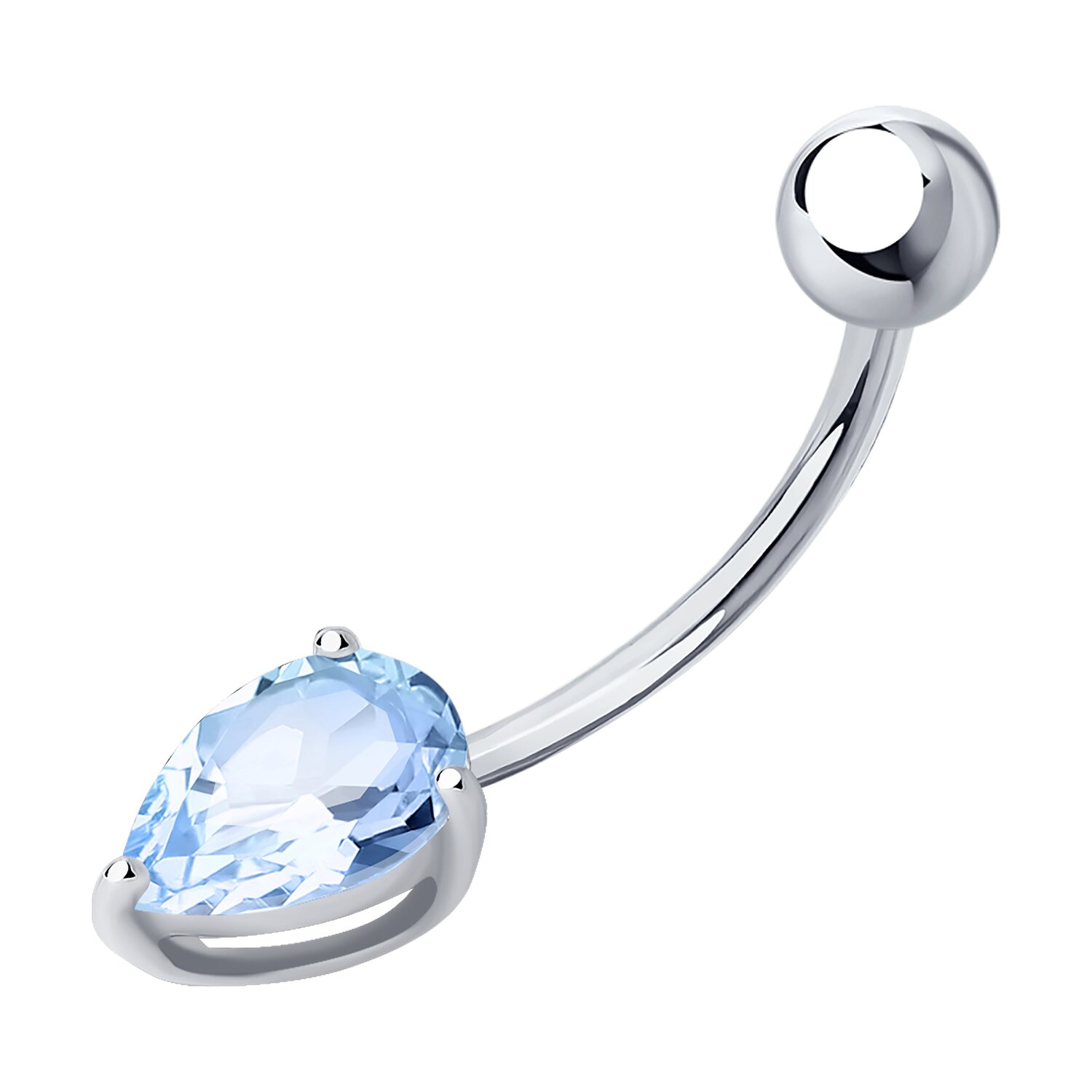 Пирсинг в пупок из серебра c каплевидным голубым фианитом