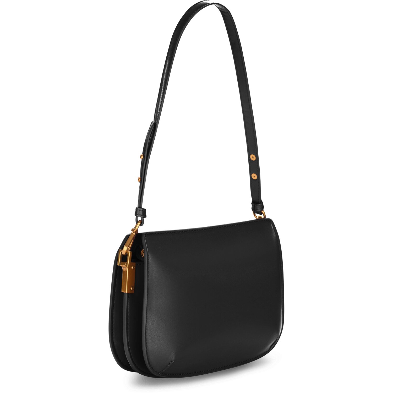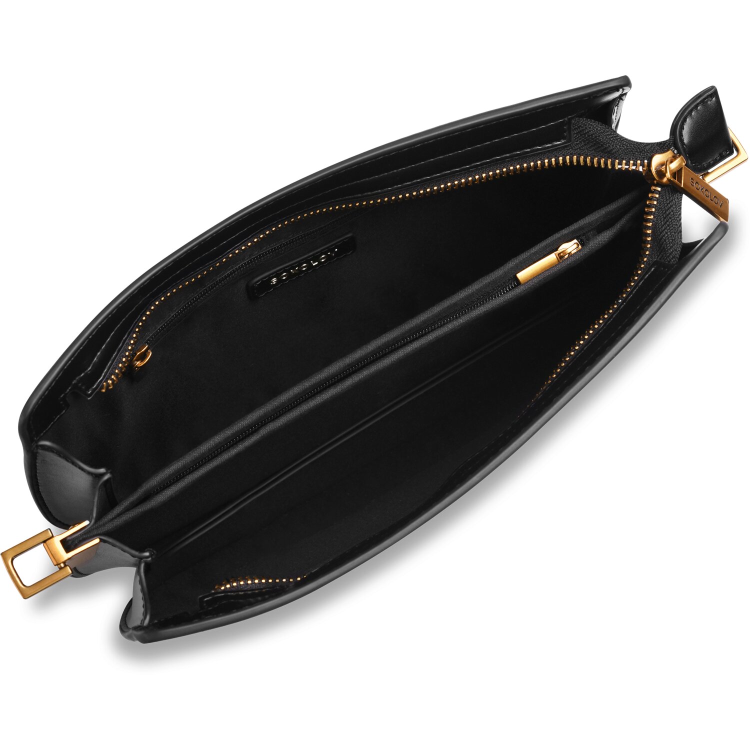 Сумка из чёрной искусственной кожи, классический оттенок, лаконичный дизайн.