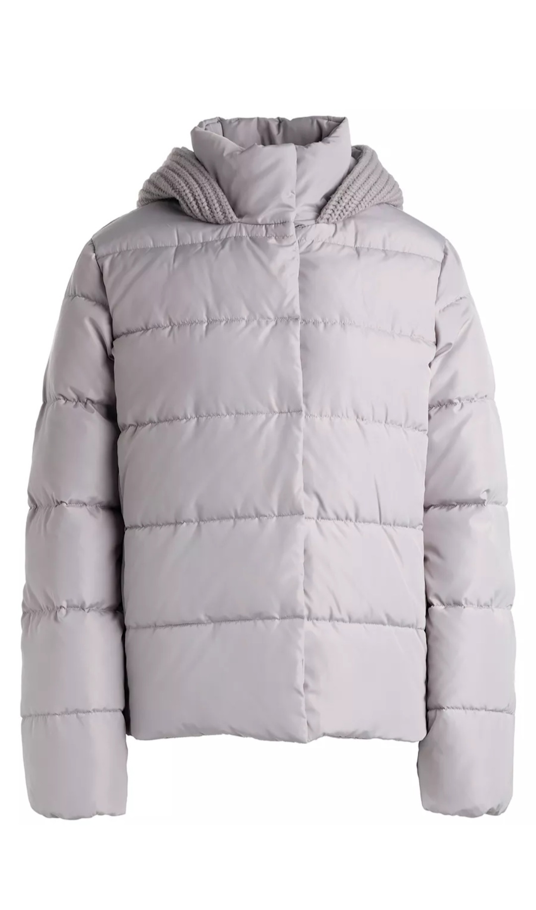 Куртка женская зимняя, короткая с капюшоном, светло-серый цвет, состав- 100% полиэстер