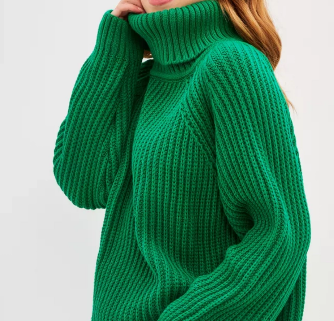 Уютный джемпер свободного силуэта с высоким горлом. Шерсть в составе отлично согревает в холода. Рукав кроя реглан, широкие манжеты и резинка по низу делают модель комфортной в использовании и подходит девушкам с разной фигурой. Размер 42-48
