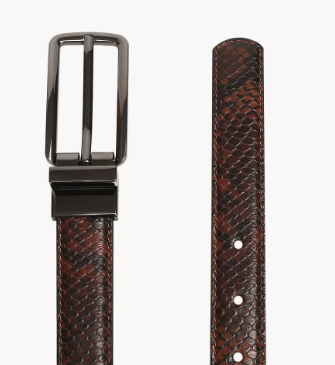 - Ремень имеет коричневый цвет с тиснением, что добавляет ему уникальности и интересного дизайна.