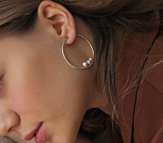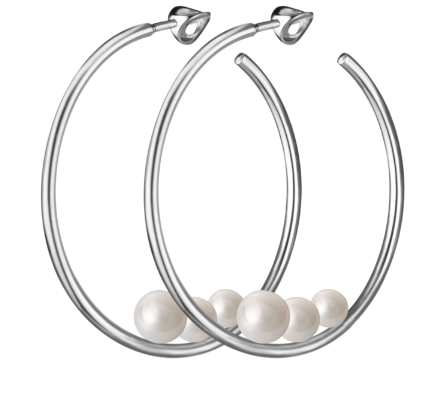 Серьги - кольца из серебра 925-ой пробы с белым жемчугом Swarovski.