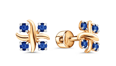 Золотые серьги-гвоздики с сапфирами 585 пробы. Удобное и надежное крепление винтовой гвоздик. Оригинальный дизайн.