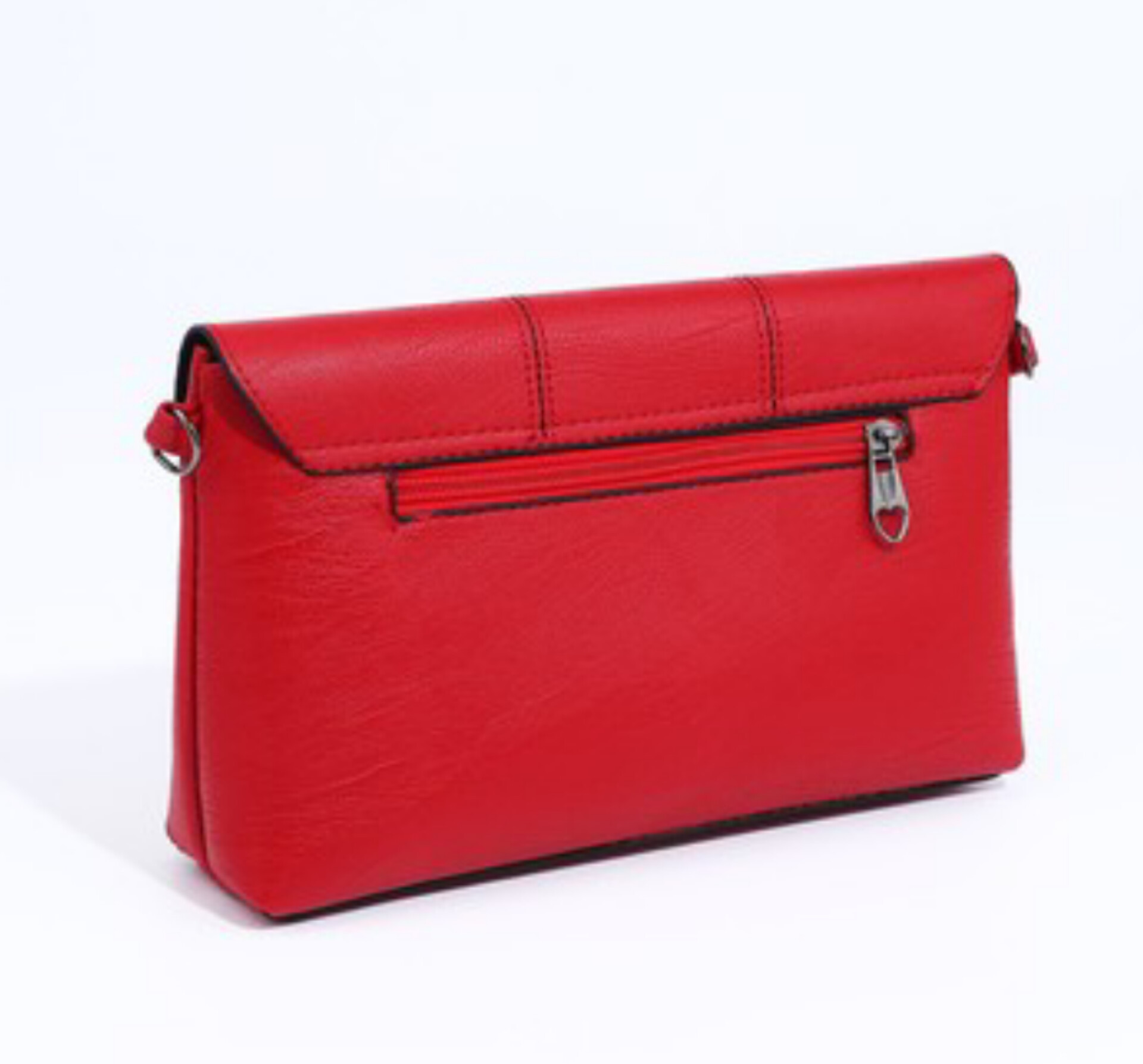 Сумка-клатч из искусственной кожи. Застёжка -магнит. Вместительная, удобная, яркая сумочка на длинном ремешке. Сзади есть кармашек на молнии. Внутри два небольших кармашка для мелочей.