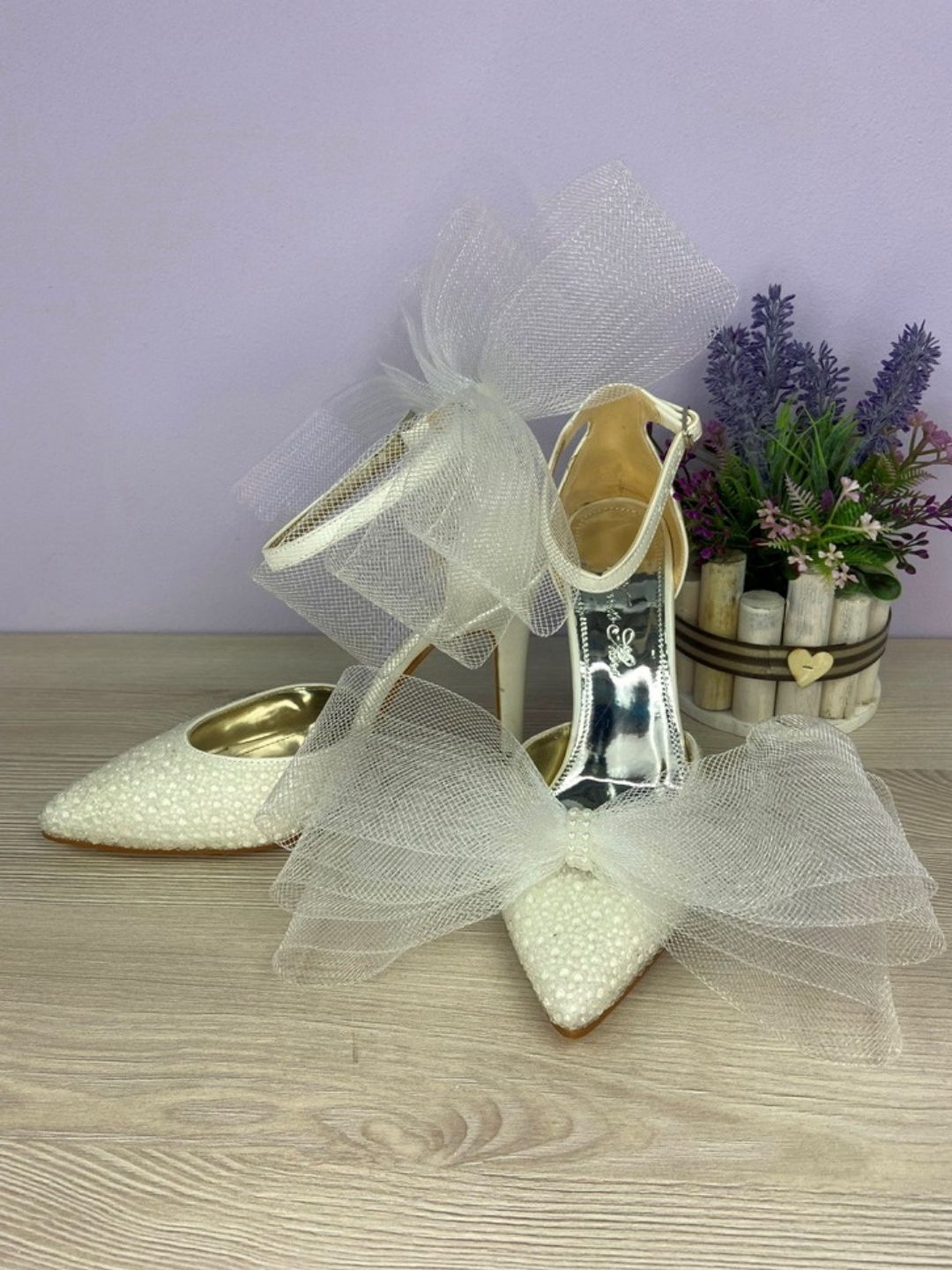 Туфли белые для свадьбы или торжества. Впереди большой бант. Размер 36, каблук 10 см. Материал верха - полиуретан, материал подошвы - ПВХ.