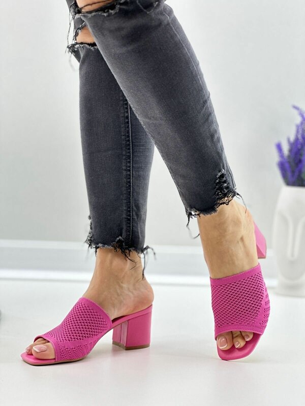 Женские сабо из текстиля отлично подойдут для летнего сезона. Модель для узкой ножки. Высота каблука 6,5 см. Размер 36, цвет розовый.