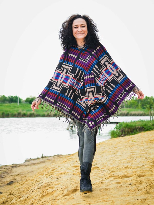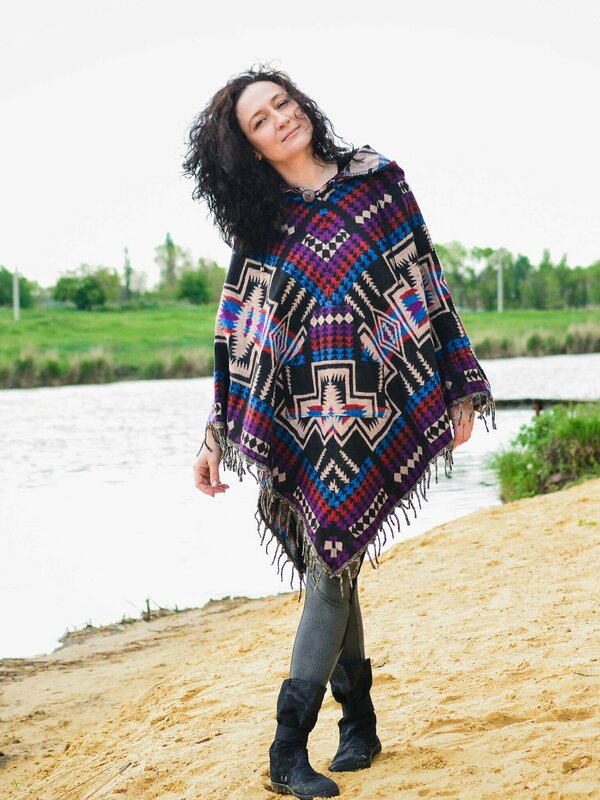 Женское пончо шерстяное в этническом стиле. Выполнено из шерсти с акрилом. Материал очень мягкий и приятный на ощупь. Размер 46-48