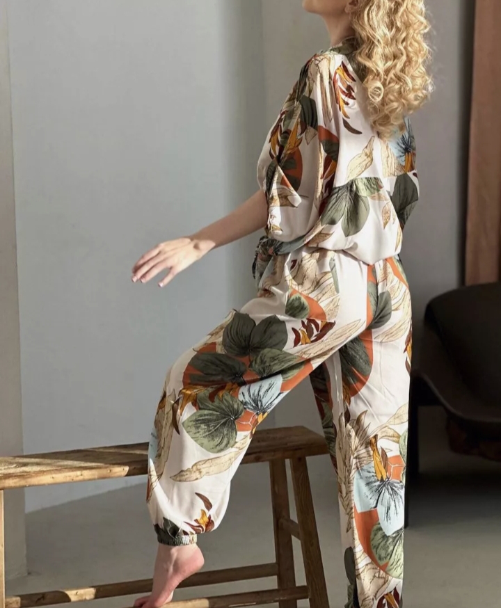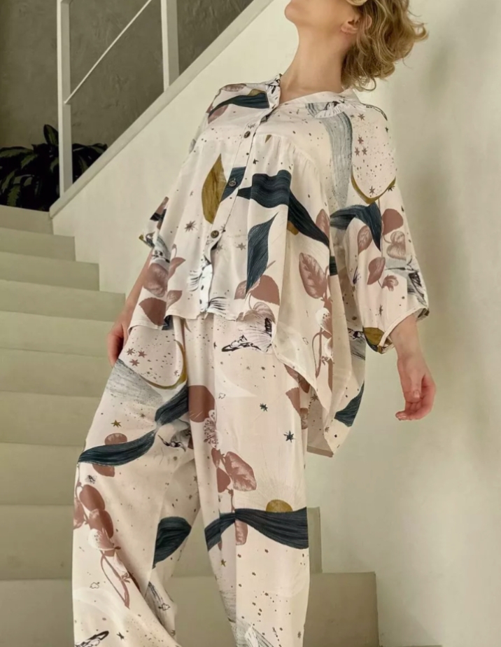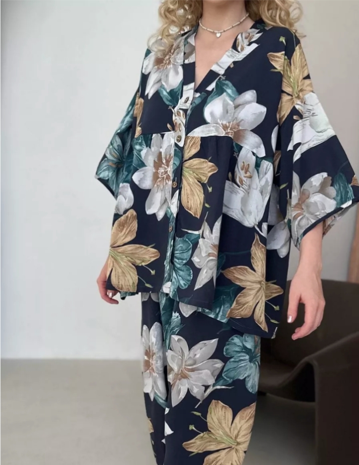 Костюм больших размеров удобен благодаря своему крою, не стесняет движений Легкий брючный комплект подойдет для пляжа и моря. Невесомая двойка плюс сайз . Идеально подходит для активных женщин полных сил.