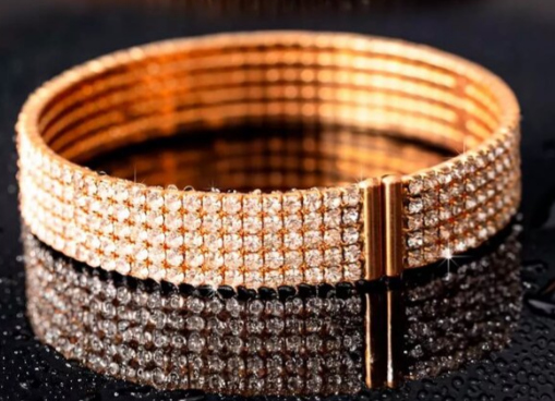 Браслет женский золотой широкий со стразами подойдет как женщине и девушке так и девочки - подростку.