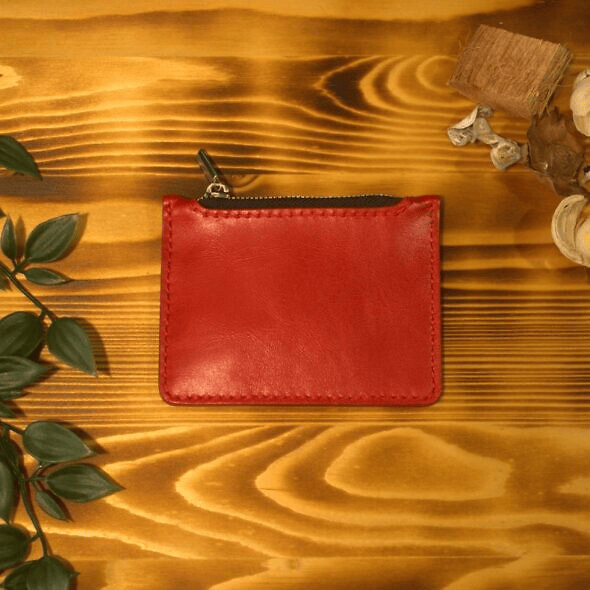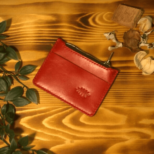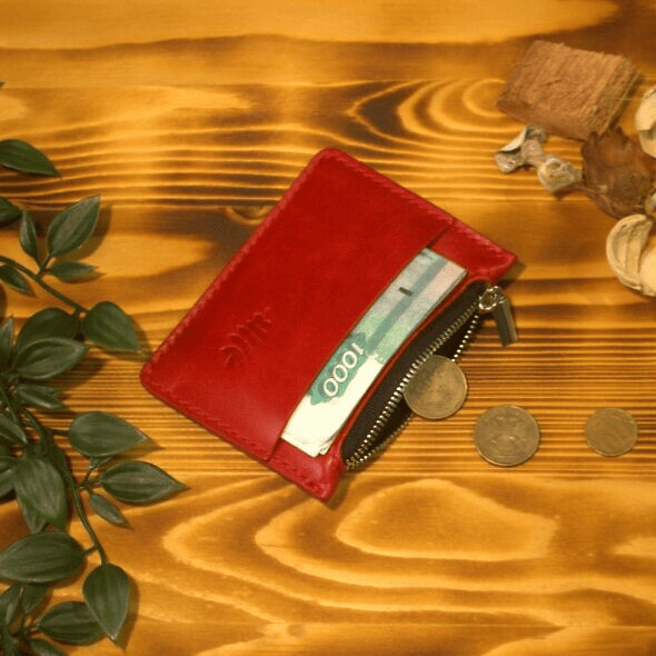 Монетница из натуральной кожи, цвет - красная рябина. Сделана из плотной овчины, имеет 1 отделение для купюр и 1 отделение на молнии для монет.