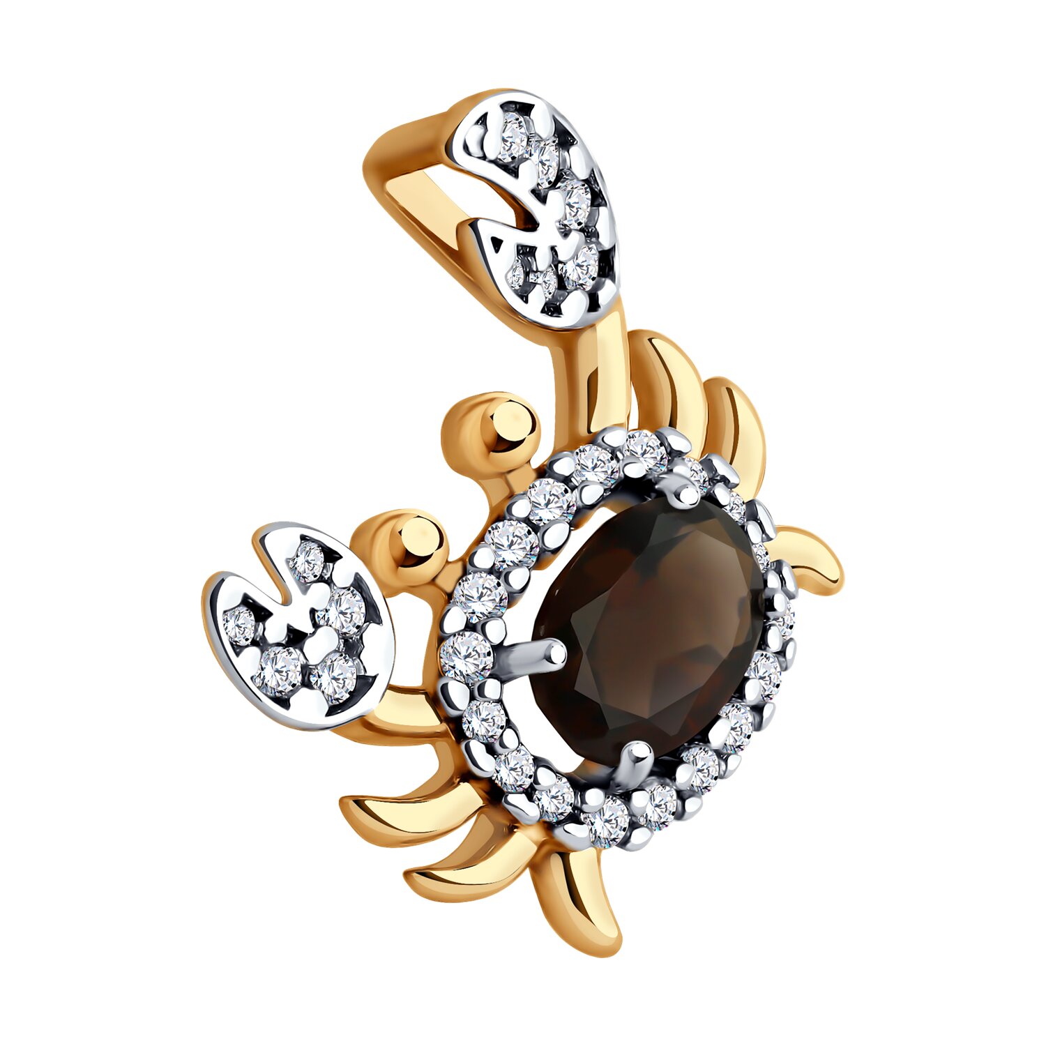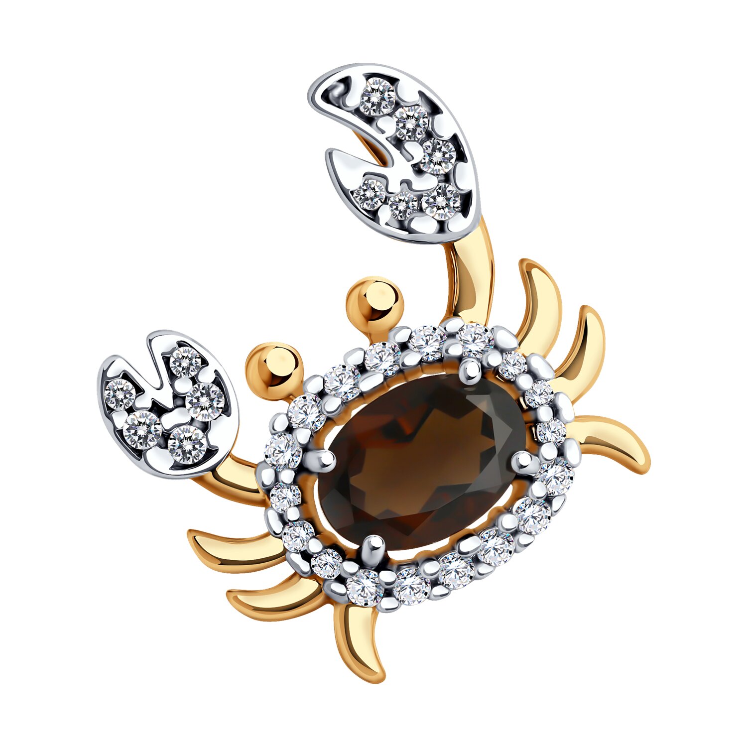 Очень красивый крабик, подвеска из золочёного серебра с раухтопазом и фианитами.