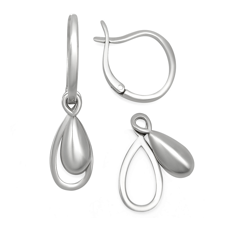 Строгие, элегантные серьги из серебра в виде капелек. Очаровательное украшение.